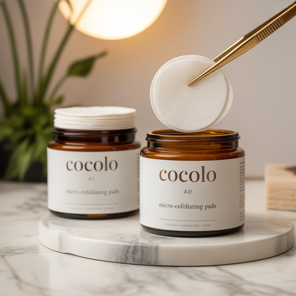 Textured cotton pads pre-soaked in a blend of 5% glycolic acid (AHA — dissolves dead cell bonds on surface) and 0.5% salicylic acid (BHA — penetrates into pores to clear congestion). Dual-texture pad: embossed side provides gentle physical exfoliation, smooth side deposits chemical exfoliants evenly. Swipe across face 2-3 evenings per week after cleansing. Each pad contains precisely dosed solution eliminating the guesswork of liquid exfoliants. Jar of 60 pads (30-day supply at twice-weekly use).